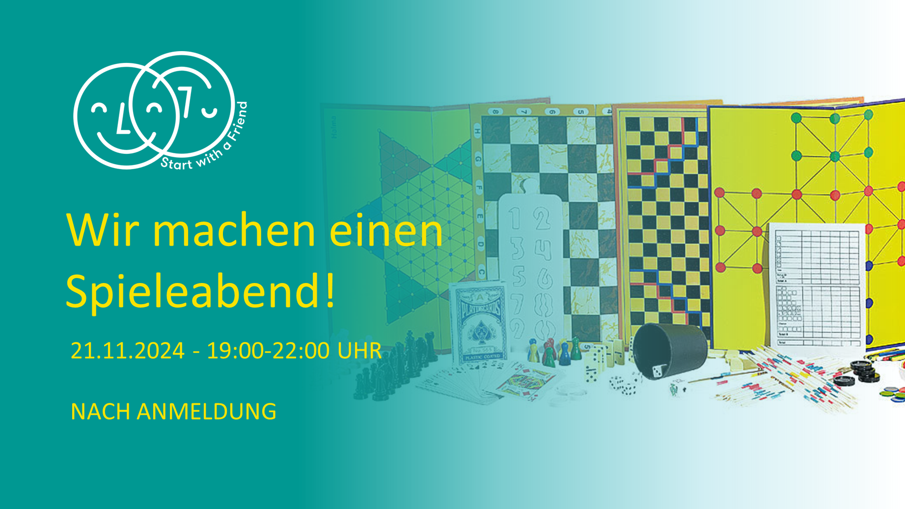 Anmeldung: https://portal.startwithafriend.de/event/after-work-spieleabend-2098