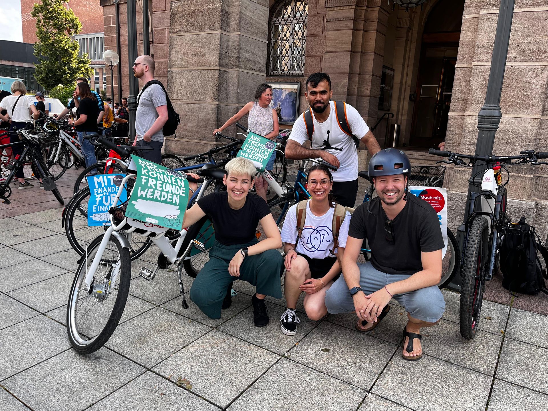 Wir nehmen zum Critical Mass teil. Wir fahren Fahrrad in einer großen Gruppe von Menschen durch Nürnberg und machen auf unsere Rechte als Radfahrer*innen aufmerksam.